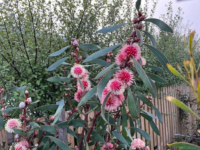 Also he planted a hakea pin cushion plant, that we had never heard of before. He said, “They have amazing flowers when mature” and he’s right there (below).
