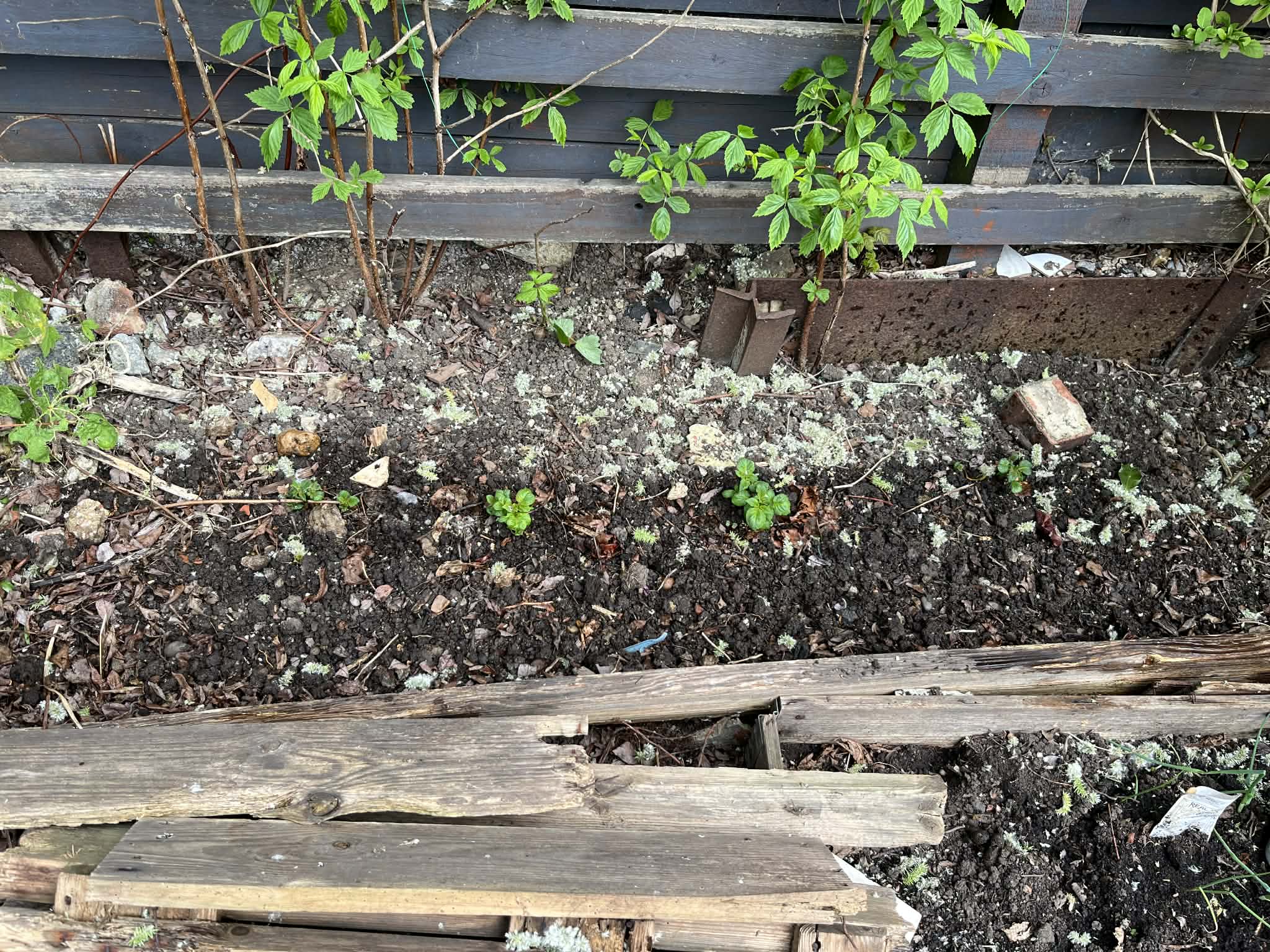 He went on to say “We’ve been busy getting a new patch of the garden ready today. Here’s the before and after shots. Still some work to do but you get the general gist. Slabs and bark and a veg trug and some old metal storage tins with flowers added.”