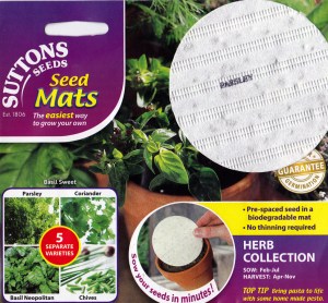 I picked up a bargain in the form of a pack of five different herbs on something called a seed mat which you stick straight into a pot of seed compost. So that’s some Parsley, two types of Basil, Coriander and Chives for the pots on the kitchen windowsill, not bad for £1.37! Keep em peeled!