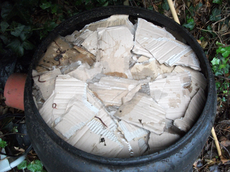 There’s not much gardening been done in good old London town this week due to the Christmas festivities/very wet weather but this morning I did rip up a few big cardboard boxes from the kid’s christmas presents (image above with brandling worms posing at the top of the pile, the vain gits!) and whacked them in the compost bin in layers in between some kitchen waste (remember to keep your pile well-balanced, man!) And the more varied stuff you put into the heap, the better quality that will come out of it and all that good compost is free (and you can never have enough of it!)
