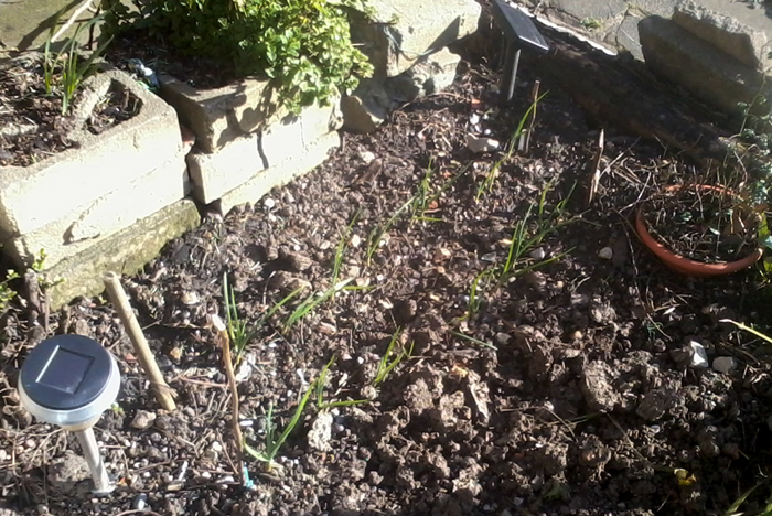And the overwintered garlic is looking good in their OCD uniform rows (below.) There’s overwintered onions in as well and I can’t help pulling up the immature ones and using as spring onions as they weren’t expensive at all to buy as seed onions so I got a big old bag’s worth.