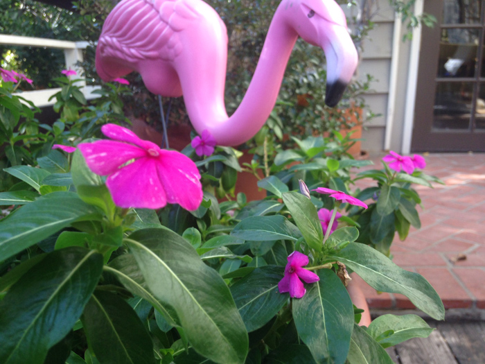 A big thanks to Nick Egan (film director and top visual artist) for sending us snaps of his garden in Los Angeles. Nick as you know, got us out of a spot of bother with some bikers at a Clash gig in Bury Saint Edmunds many many moons ago (see Cloches over the Westway), designed some well classic record sleeves (The Clash’s “White Man in Hammersmith Palais”, Bow Wow Wow’s “See Jungle!, See Jungle” and Dexy’s “Searching for the Young Soul Rebels”) and also keen on the joys of gardening. Big up the pink flamingo! (pic above)