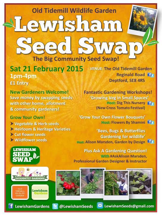 A big shout to Lewisham Gardens and Golightly Gardens for letting us know about their next seed swap on Saturday February 21st at Old Tidemill Wildlife Garden, Reginald Road, Deptford SE8 4RS from 1pm – 4pm.