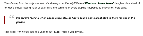 Don’t make the mistake we did by adding salad leaves from a dinner plate that had been contaminated with some meat juice. It didn’t dawn on us that we did wrong until one Saturday while despositing some vegetable peelings we were faced with the back end of an enormous rat – the size of a large guinea pig – escaping down the compost heap. The large rodent took off into the neighbour’s garden with our cat gingerly following it down their path. A minute or two later hysterical screams were heard from next door but one’s back yard where a family barbecue was in progress. We kept our head down for the rest of the day and vowed never to put any meat in that bin again! #Compostingiseasy!