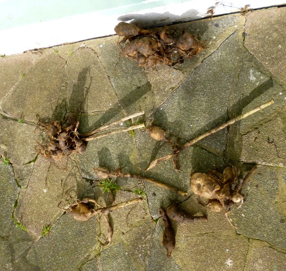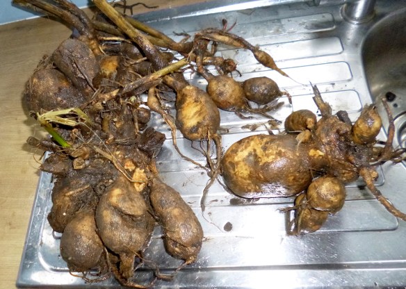 We know we should’ve taken them out a lot earlier but sometimes that’s the way it goes. We took off the rotting parts and dried them out in the sun the best we could and now they’re back under the stairs for a few weeks. We’ll inspect them on a regular basis and see how we go, fingers crossed we don’t lose any as we love a dahlia here. Next time we’ll pull them out in the autumn after the first frost like you’re supposed to!