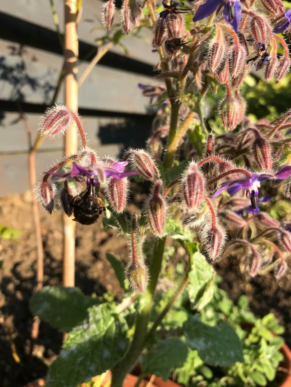 Yesterday we had some well needed rain but the dullness in the sky didn’t help spirits indoors. It’s still a but cold today but the sun is peeking out every now and again and we’ve been doing the same but with a hoe, knocking off any weeds etc.