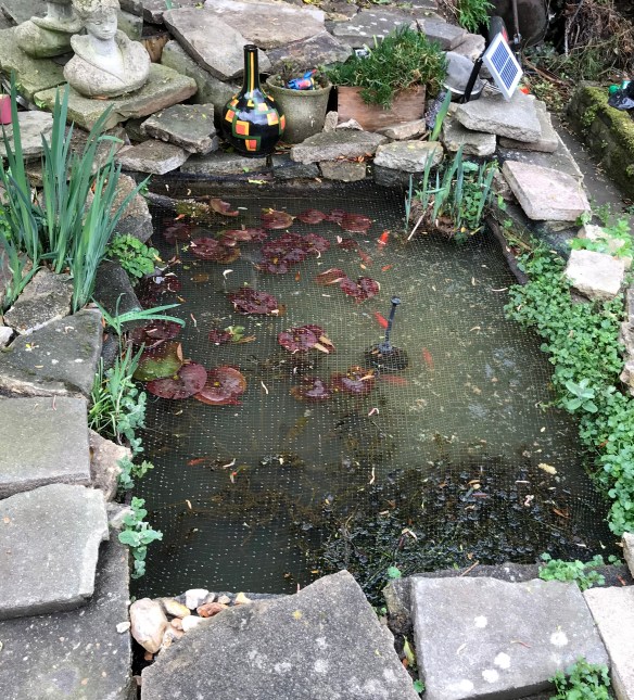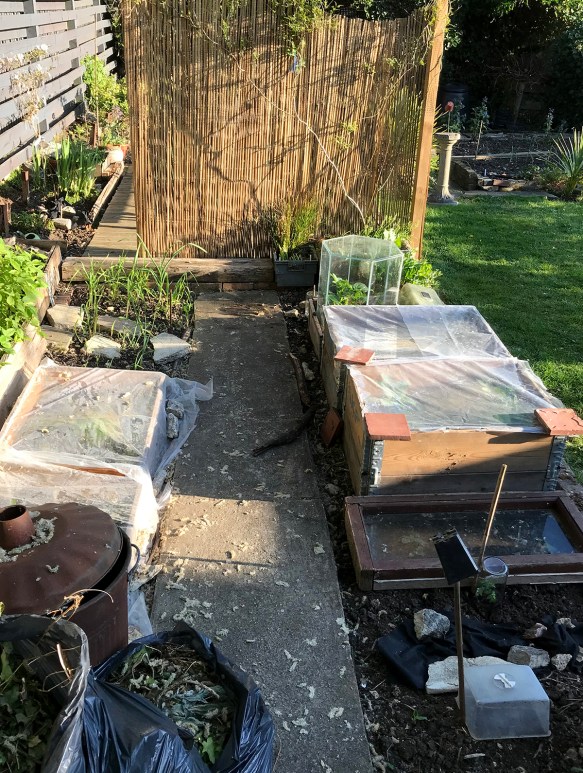 And the seed potatoes that are growing under the black membrane which was used for under the decking are coming through too (we won’t need to earth them up but a little bit of soil can be put over the growing tips as frost protection). And even though us lot in lockdown are a bit fed up with the rain, at least the garden and the fish are loving it! #pondsnotdead #lockdowngardening