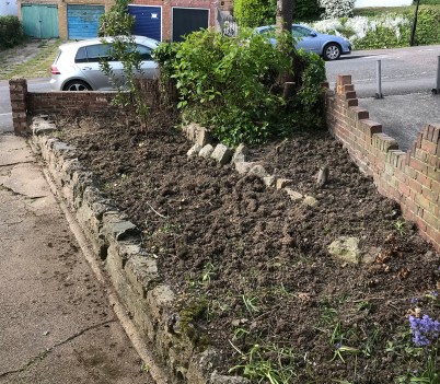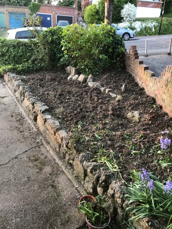 Apart from the composting a good bit of gardening was done in the front, weeding and attacking the ivy on the garden wall and learning that some of it is in fact holding up the said wall. There may have to be a compromise tomorrow when it comes to finishing the job because of that. We’re clearing all of the two tier bed and when things get back to some sort of normality and garden centres are open again we’ll fill it with some shrubs and grasses but it’s good to see it so clear for once! #lockdowngardening