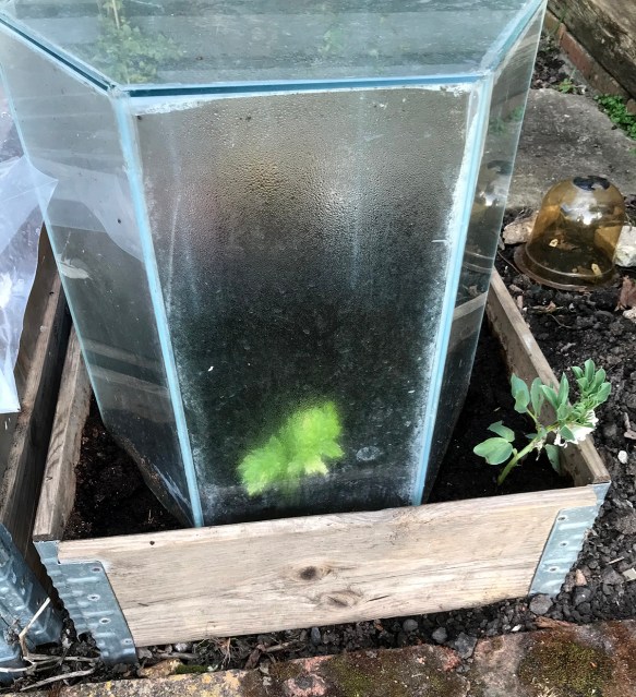 And there’s life from the celery, god know’s what’s going to happen to it but it’s growing! There’s a link here that shows you how you can do it even though we didn’t suspend over water, we just stuck it in the raided bed! #ifitgrowsitgrows #gardeningduringlockdown