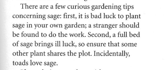 And here’s a wonderfult tip/warning from the “well interesting” or “well out there, man” (whatever your point of view about this kind of thing is) Encyclopedia of Magical Herbs” by Scott Cunningham (Llewellyn Worldwide) about the herb that is Sage. Personally, we love this book as it makes us smile during another weekend of lockdown. #gardeninginlockdown #losingourmarblesandpersonalityinlockdown