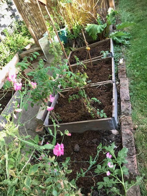The bags of soil enricher stood around in the corner for the grand total of about 24 hours until it was put to good use on the raised beds that have now been stripped of their spuds, lettuce and onions apart from a couple of lone tomato plants.