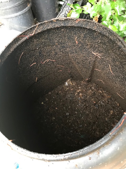 In the dalek bin, things are progressing and it looks like the worms are on the way out (that’s a good sign to say it’s nearly done) even though there’s a few hanging onto the side. The dark brown crumbly stuff inside looks like it’s going to be good for the garden.