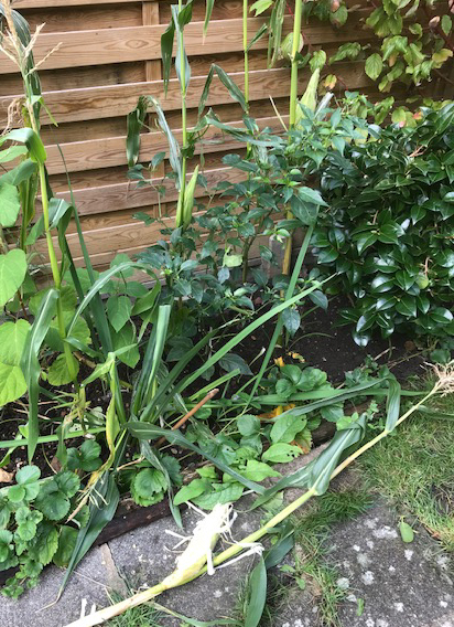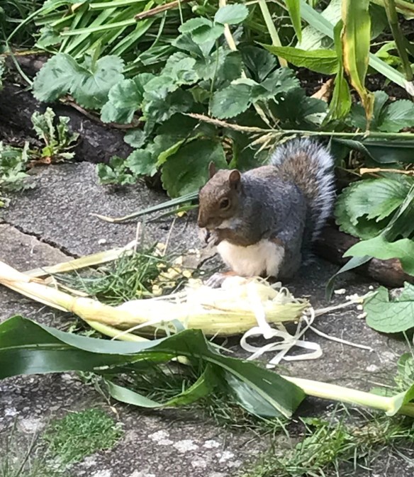 We are even really considering a scarecrow (as suggested by Stevyn of Iron Feather Journal fanzine) as there was a cat sleeping possibly 3 metres away which didn’t deter the pesky squirrel consuming one of the many corn cobs that had formed on our plants we purchased from Shannon’ early this year. There’s two cobs left and they’ve been taken off. The really hot pepper plant beside it hasn’t been touched, we wonder why?