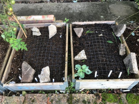 We’ve also put some metal netting/grid type things on the top of the surface to stop the pests. The most recent ones to the garden are the pigeons as we caught them red handed at the brussel sprouts tops earlier. And we thought it was the slugs! We really have to think about some netting as we wonder was it them at the cardoons as well?