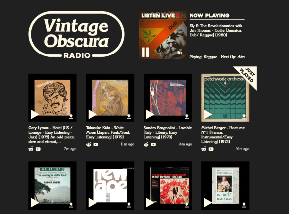 We’ve just discovered a brilliant internet radio station called Vintage Obscura that plays a cross section of tunes across many genres. As it says on their twitter here all tracks are: more than 25 years old and have fewer than 30,000 views on YouTube.