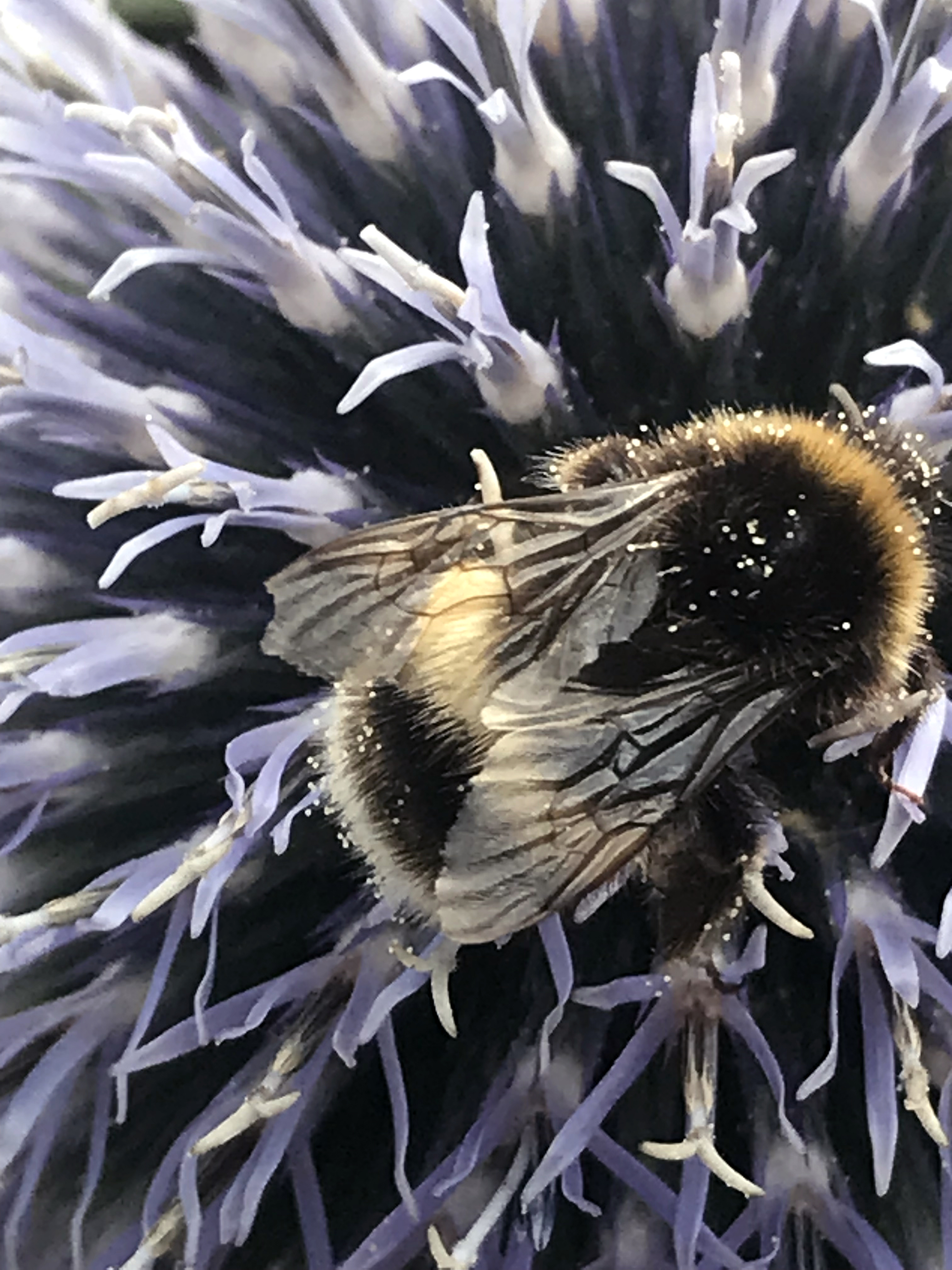 We read somewhere that there’s been a marked downturn of pollinating insects this year but it did seem it was all go on that front earlier. We didn’t know that the echinops are very popular to the buzzing species and even now at 6pm the bees are still at it fighting for the best spot on the golf ball type flowers. Have a good Saturday night!