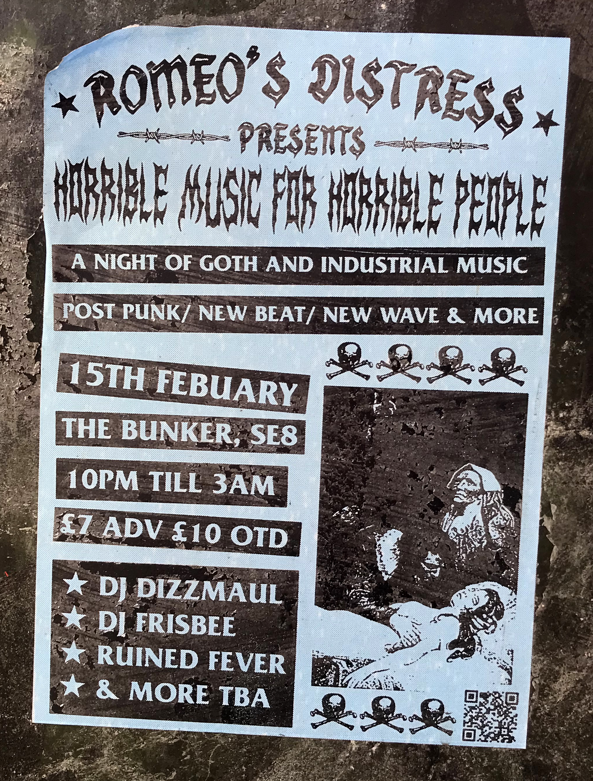 You’ve heard of “Ant music for ant people” but “Horrible music for horrible people”? This great flyer (above) was seen on the main drag of Deptford last week possibly not that far away from where ATV’s “Life after life’s” cover shot was taken (below).