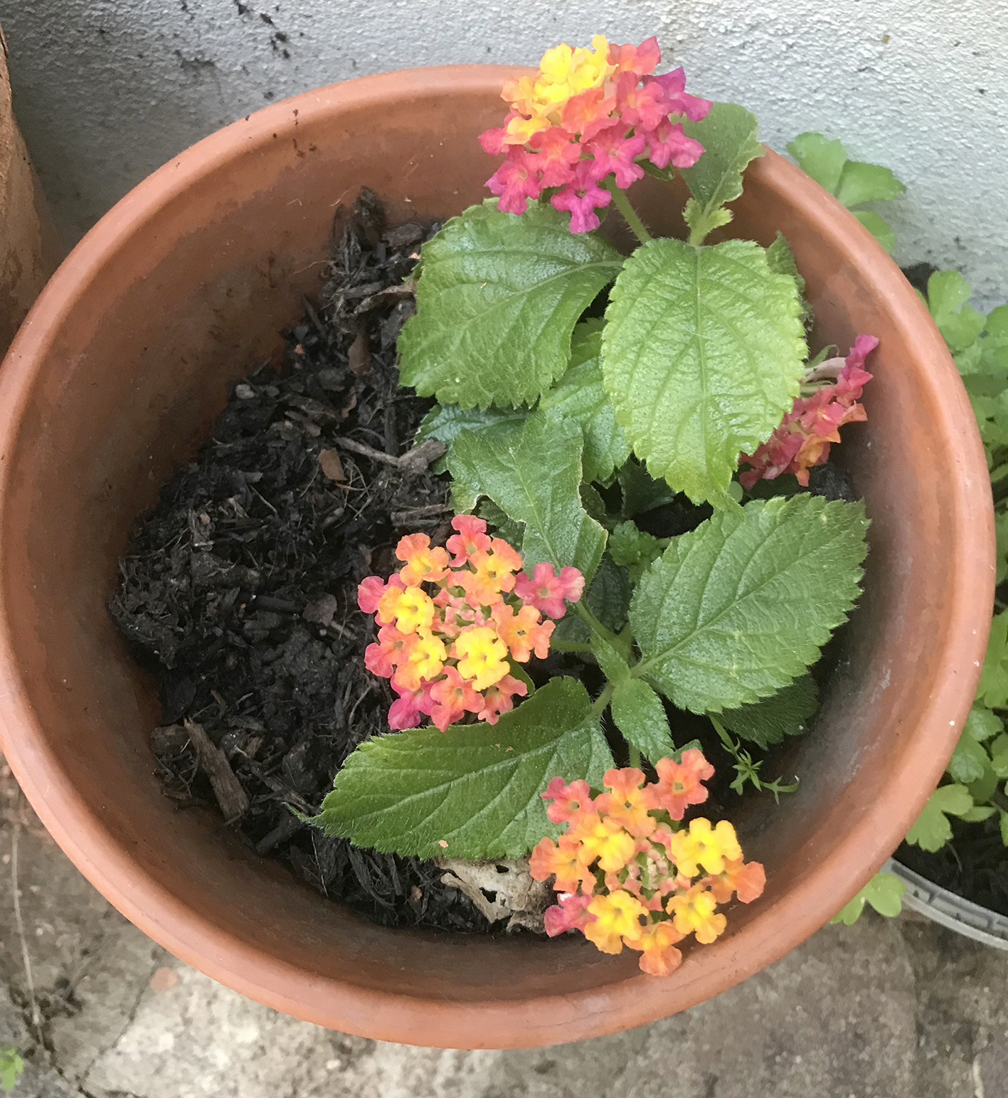 The week after seeing the pictures we bought a couple of lantana plants off ebay, not sure what happened to the other one but here’s one of them. As far as we read it’s a perennial so perhaps next year it will look better. We’ve just read online that in some places they can be invasive and considered a noxious weed, blimmin’ heck on that note we’ll keep them in a pot.