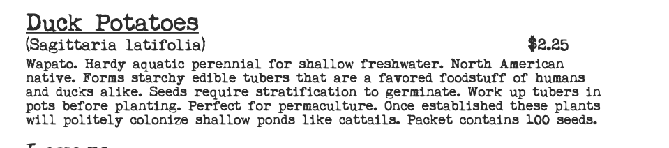 There’s so many we have never heard of before but the above and below are real suprises to us. We forwarded the catalogue onto our mate Gerry Hectic who enquired about “Flat of Egypt (300 seeds for $3,75) or some Bulls Blood? on Page 31″. Isn’t gardening great?