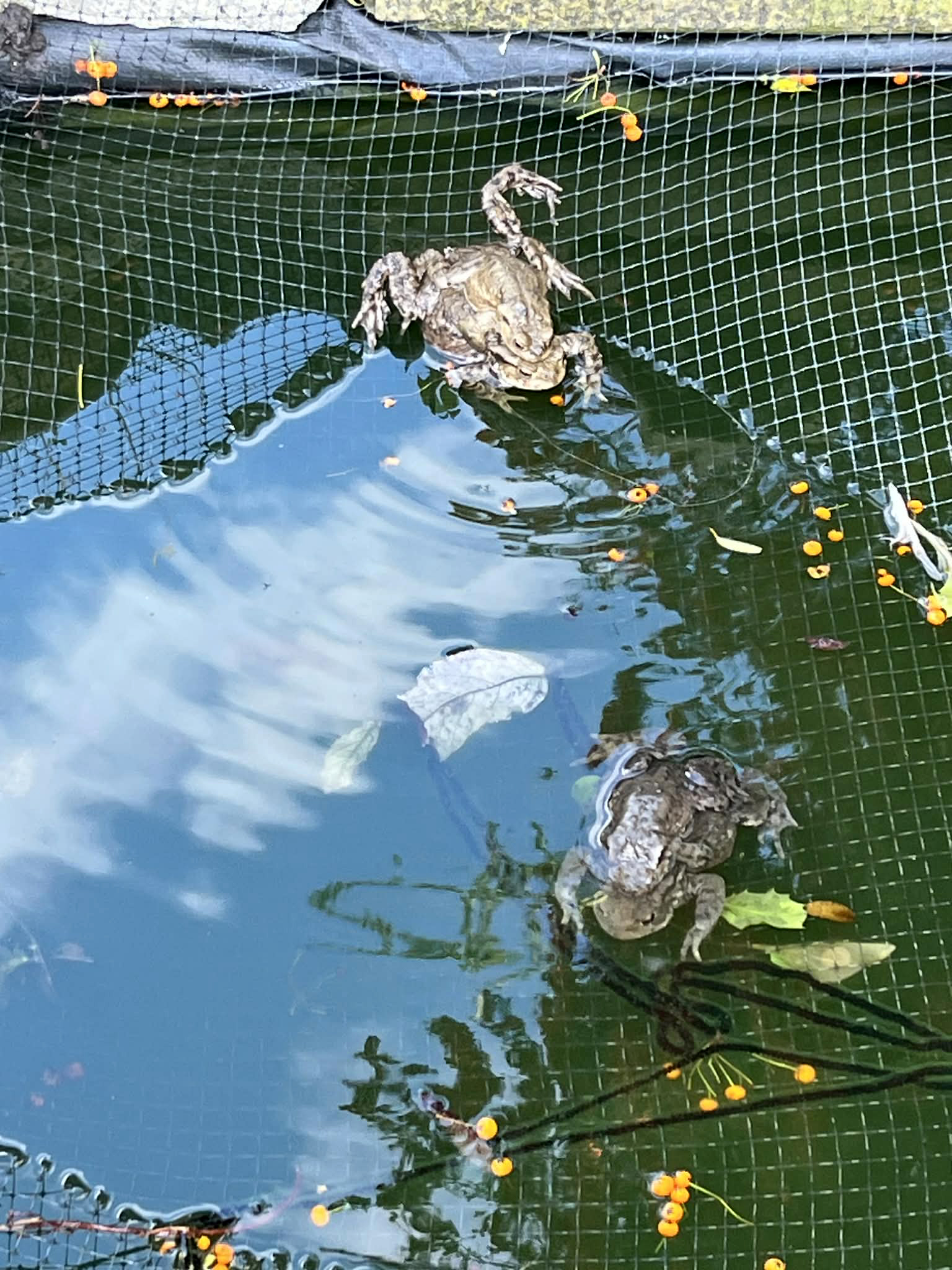 Today we had some good weather so had a couple of trips armed with the odd teabag and egg carton back and forth to the compost heap. On the way back we spotted these three on the pond. We’ve just found out that it’s toads that lay the spawn in lines. Well you learn something new every day.