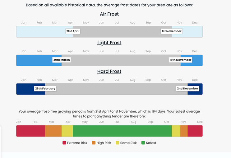 We checked http://www.lastfrostdate.co.uk above again and hopefully we should be okay, but you know what the weather will be like, it could be snowing here tomorrow and then a heatwave over the Easter weekend. We say stick your spuds in but keep an eye on the weather and if there are frosts forecast, stick some fleece, fabric or net curtains over the top! Good luck.