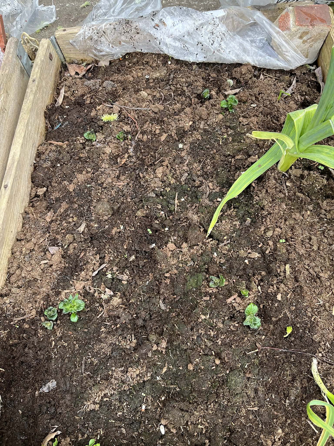 We got ours in a few weeks ago in the raised bed (and some in another bed under jam jars) with plastic covering them, and they’re already sprouting. There’s still a risk of frost though, so we’ll be putting the plastic back over them in the evenings to keep them from any cold weather or potential frost damage.