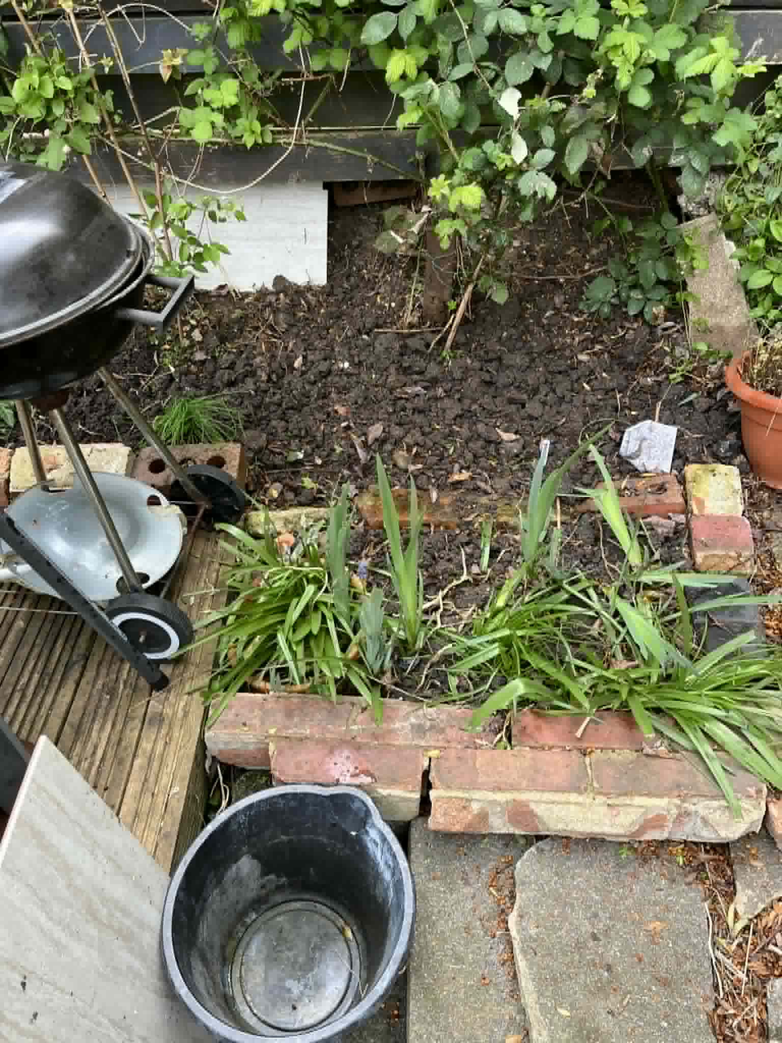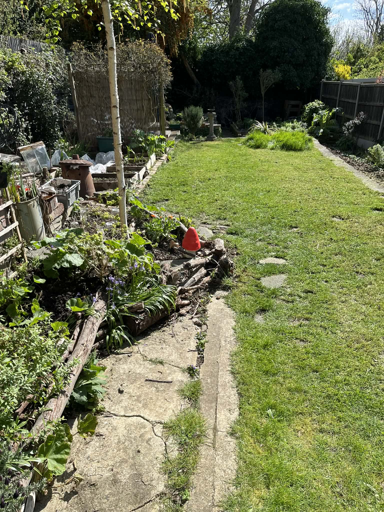 The side bed towards the bottom of the garden was cleared, and in place of the weeds, wildflower seeds were sown. It’s still cold, so whether they’ll thrive remains to be seen as it’s a bit of frost pocket down there. We were also told by a neighbour a few doors down that an underground stream runs through the gardens around that area. Whether that is true or not we’re not sure but the soil is a bit on the boggy side around there.