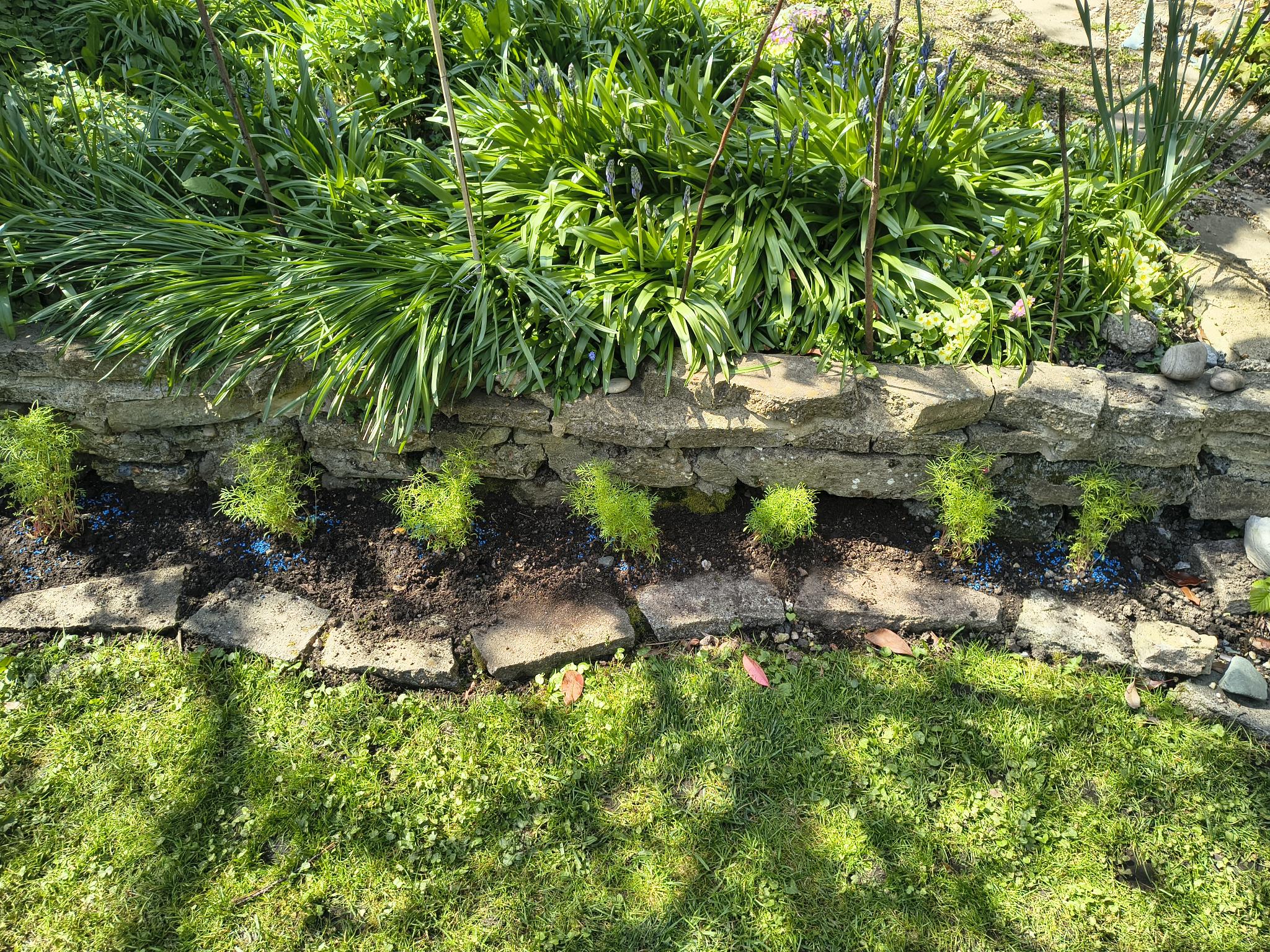 Great to hear from Debby H in north London for letting us know how her garden is at this time of the year. She said, ” I have now planted the cosmos in the back garden (above), and we have hundreds of bluebells coming up this year (below)” There’s a big clump behind the cosmos above.