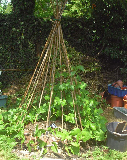 And while we’re on beanpoles here something brilliant bean support-wise from a few years ago from Vic Godard from The Subway Sect’s Dad’s garden. It’s a 16 caner with a nice tying system at the top and it really looks the part!
