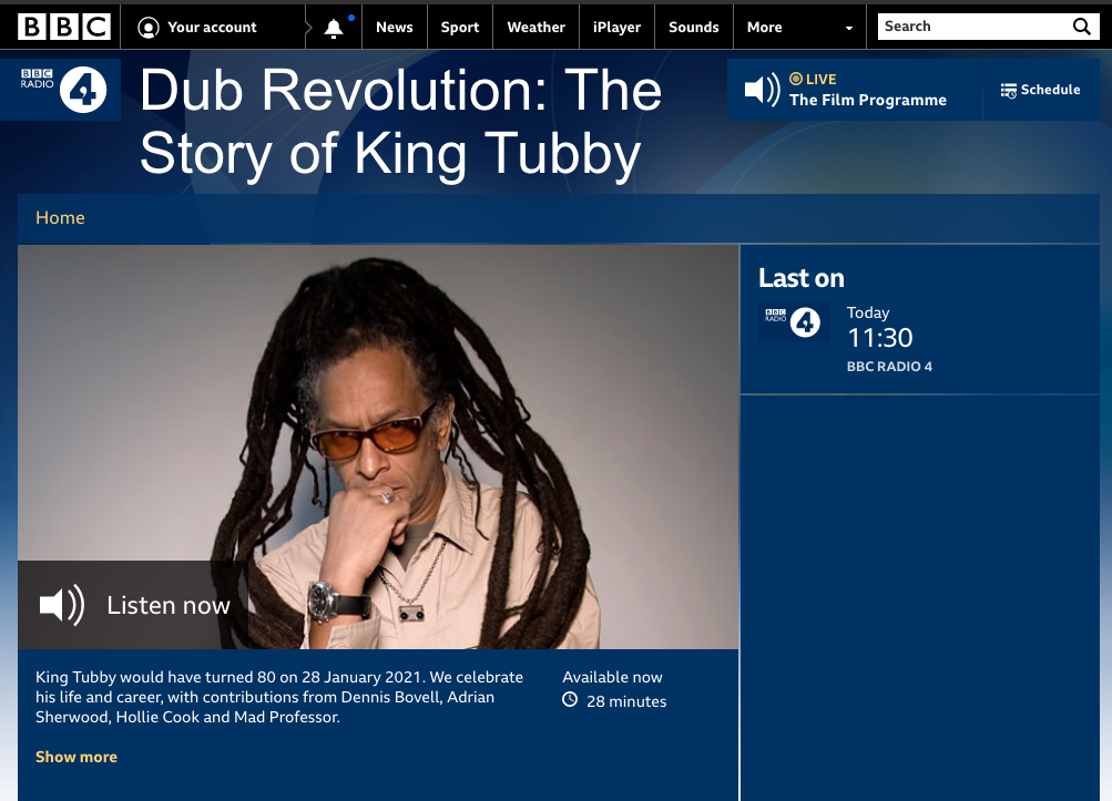 Yesterday morning on Radio 4 was a lovely dubwise treat thanks to Don Letts with Dub Revolution: The Story of King Tubby (available on listen again here) a celebration of the dub organiser himself. Worth a listen if you love the world of dub like we do here.