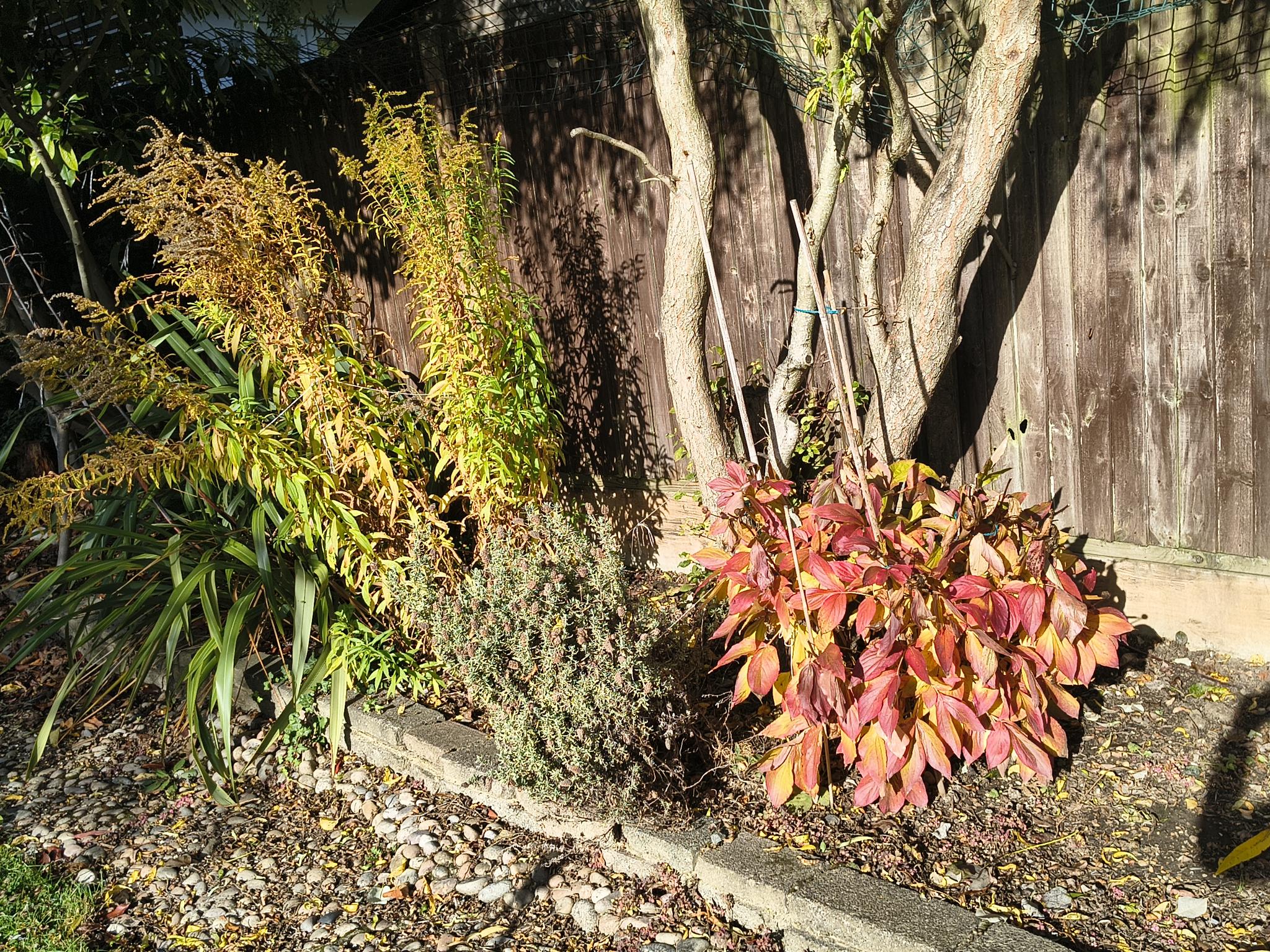 Thanks to Debby H up in north London for this picture above. “The garden plants may be coming to an end for this year, but I think the colours are lovely in the sunshine. Here’s a picture of my golden rod and peony plants, with the french lavender in the middle.” That bed looks great and there’s still a good bit of colour on show.