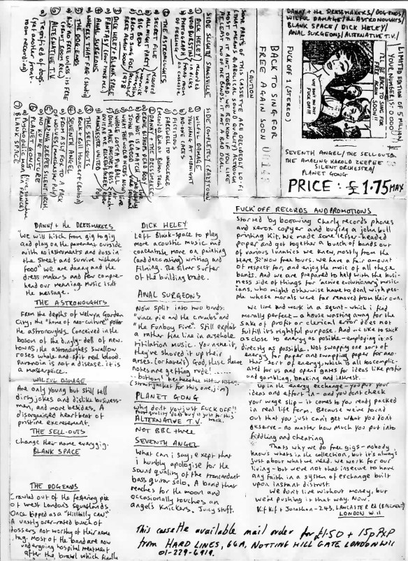 From looking online the tape was available at the 1976 Deeply Vale Festival and as Michael Williams (who worked at Better Badges and Dub Vendor amongst other places and was one of the founders of the Dread Broadcasting Corporation, more info on that here) said on Facebook a few years ago: “‘Aberdare Rockers’ was a compilation made in my flat mid 1970s, can’t remember who compiled it, could have been ‘Nightdoctor’ founder Charles Wood, my brother or Joly MacFie. Joly and I did Better Badges and were reggae fanatics and so duplicated this compilation, to as one did in those days turn people on. It was thought of as a regular underground release but no just a compilation made in the heady days of the 70s amidst ganja fueled evenings pre punk.”
