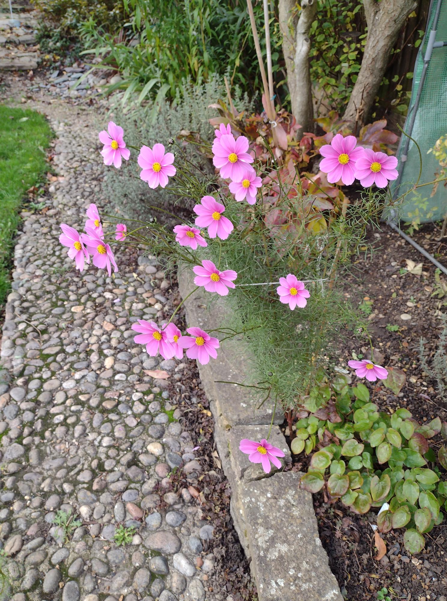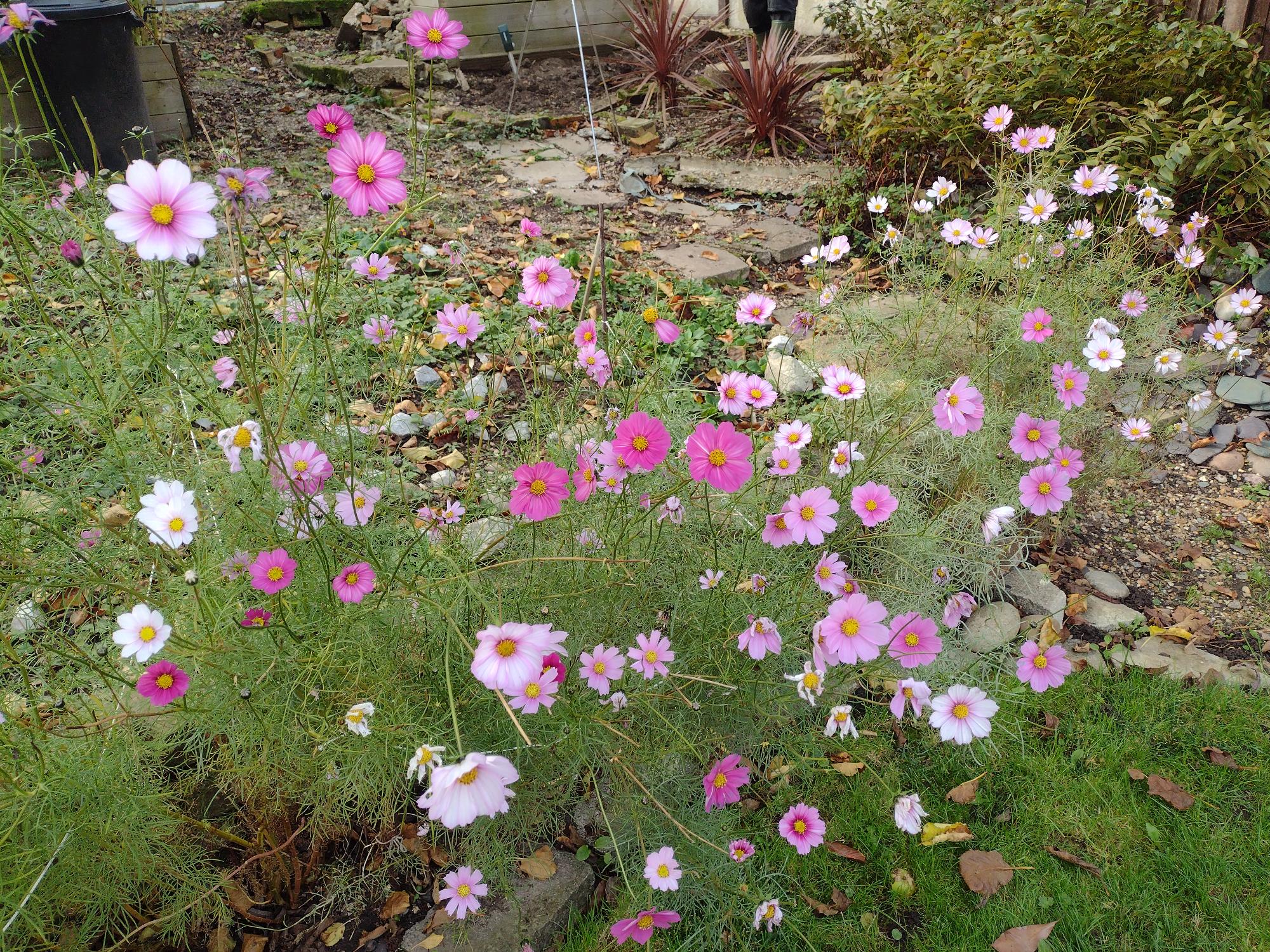 Hi to Debby H for sending us pictures of the state of play in her garden when it comes to continuing cosmos flowers at the moment and it is really crazy stuff. All the garden borders have the plants in them and the volunteer/self seeded one in the north bed has the most amazing colour (above).