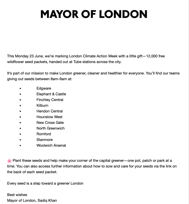 Cheers to our good friend John F for passing this little bit of joy on. Free wildflower seeds from certain train stations this monday coming. Cheers Sadiq!