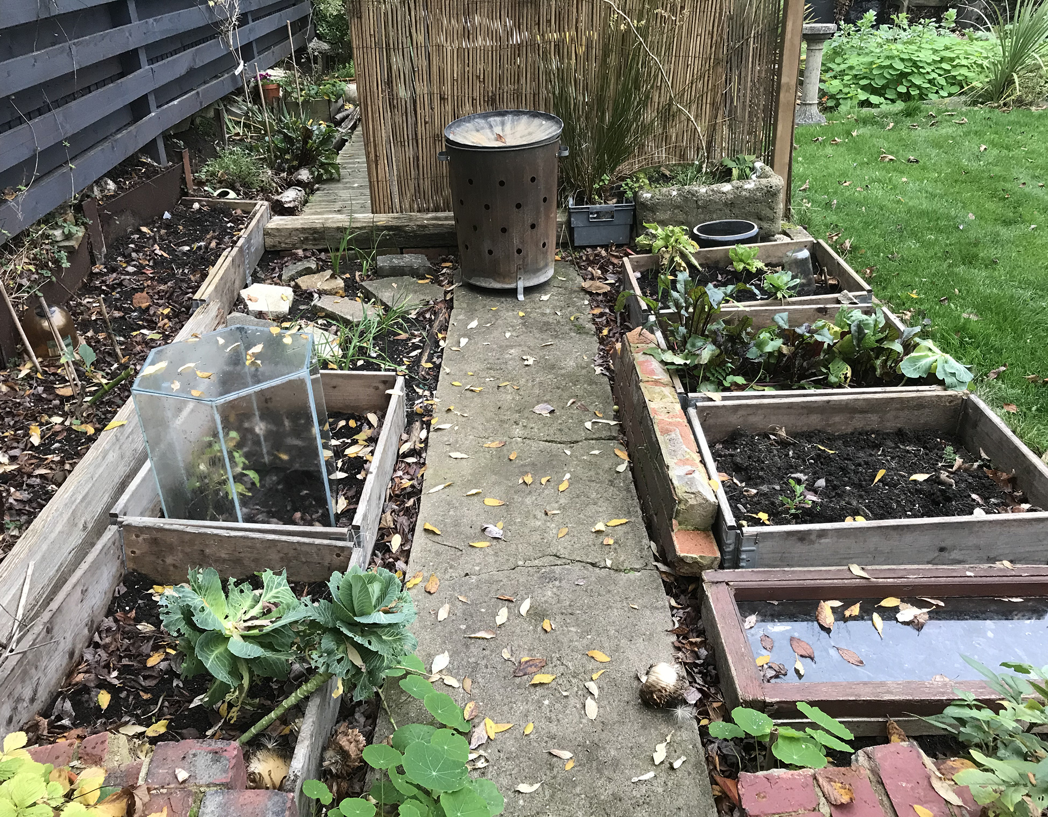 And the beds in front of the Dad corner (that has been productive this year thanks to the new raised beds) have been tidied up a bit and now ready for the winter. In the pic you will notice a couple of cabbage stalks that we left when we cut the leaves off them. Not sure if it will happen over the winter but usually when you cut them off like that, the leaves grow back again. Value for money or what?
