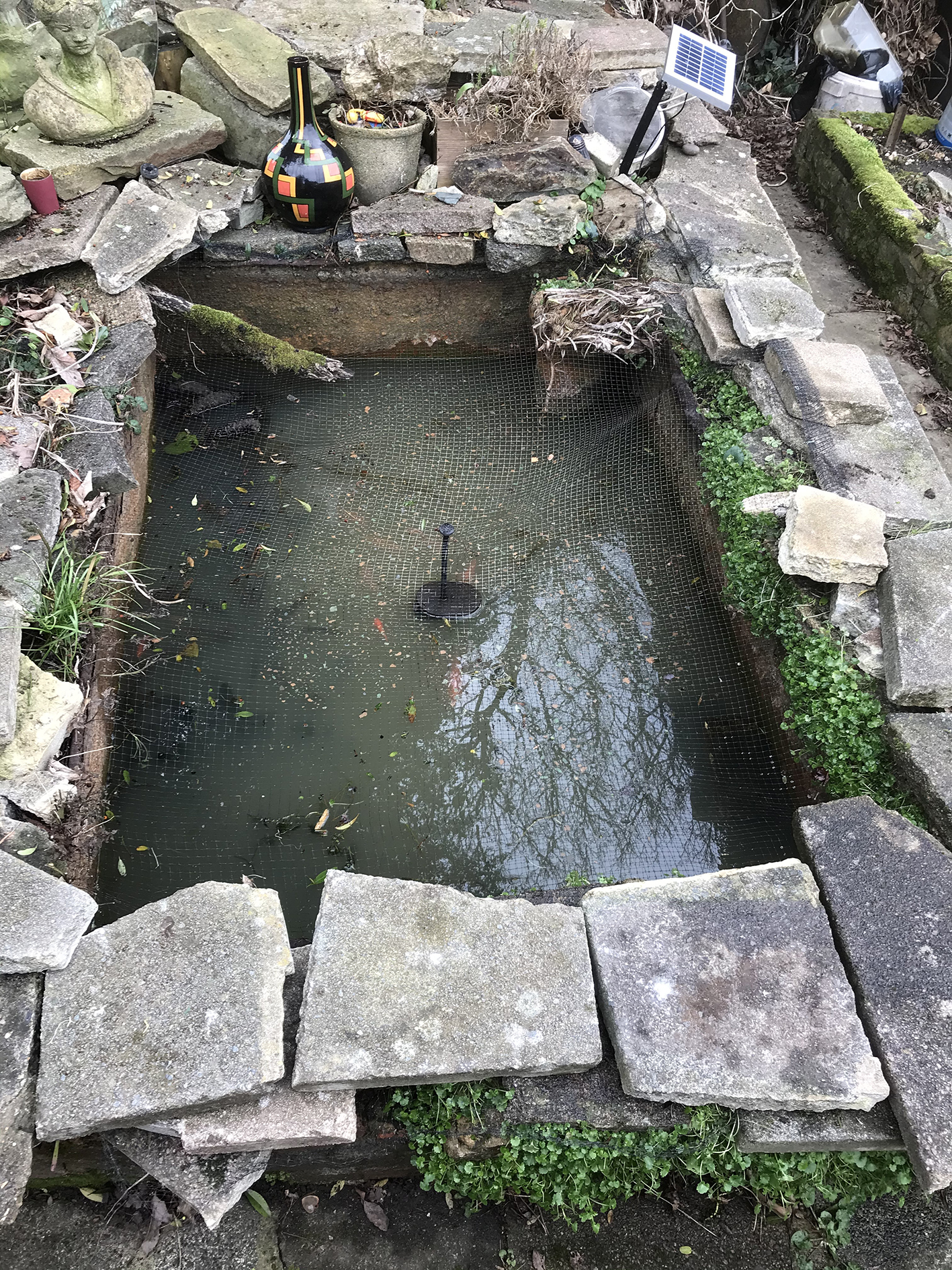 We had a little tidy up this afternoon as the weather was so mild, we took the pump out of the pond and gave it a clean and a dry and have put it away until the spring. We also got a little fire prepared for a New Year’s Eve mini burn up later.