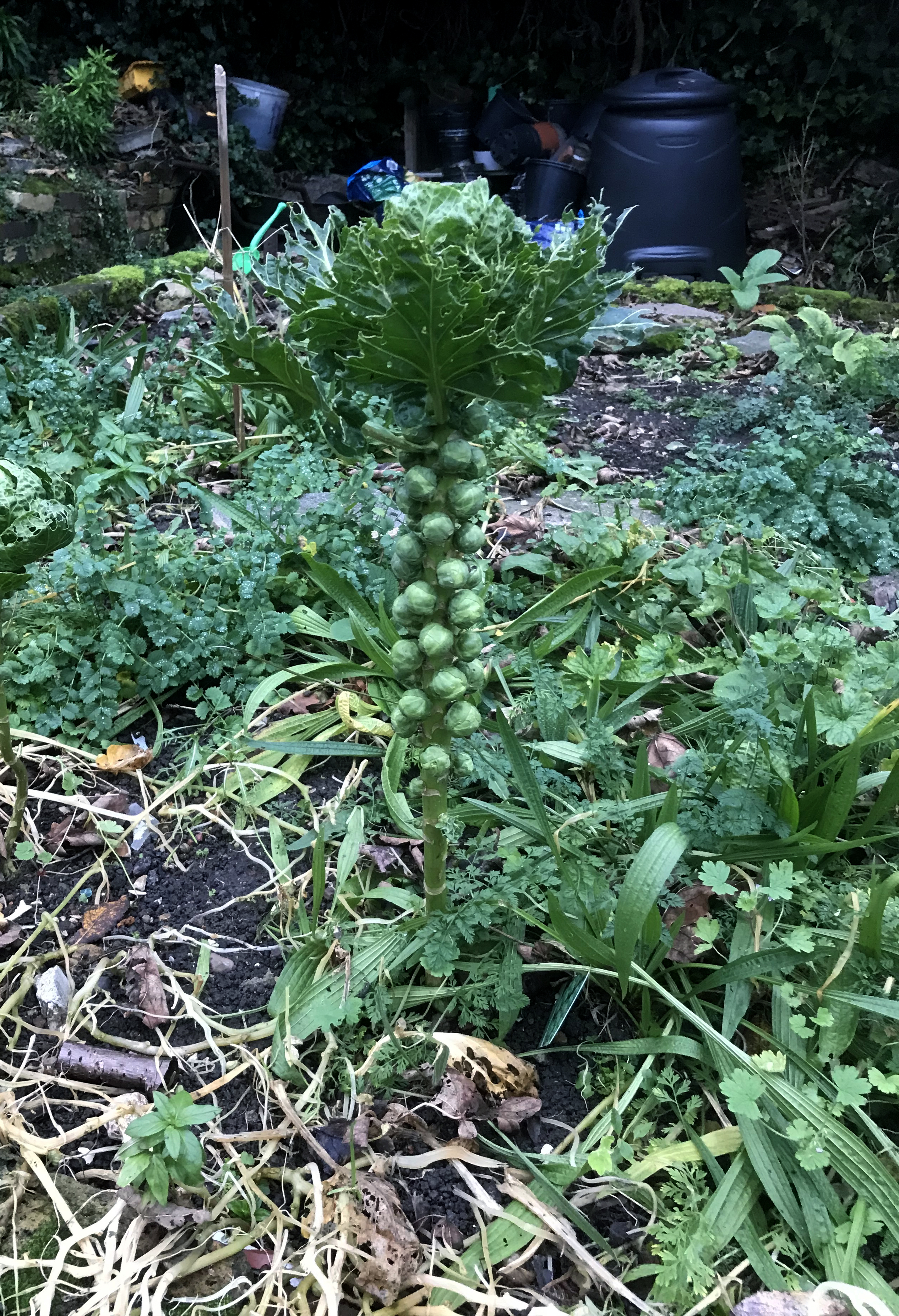 For the first time in years we’ll be having Brussels sprouts fresh from the garden on Christmas day as the don’t look like they’ve “blown” (here) and/or nothing’s wiped their rear end on the stalks (see story here). Compared to the ones in the organic shops they’re small but who cares as they look good enough. They take a while to grow and we’ll let you know after Christmas dinner if they tasted alright.
