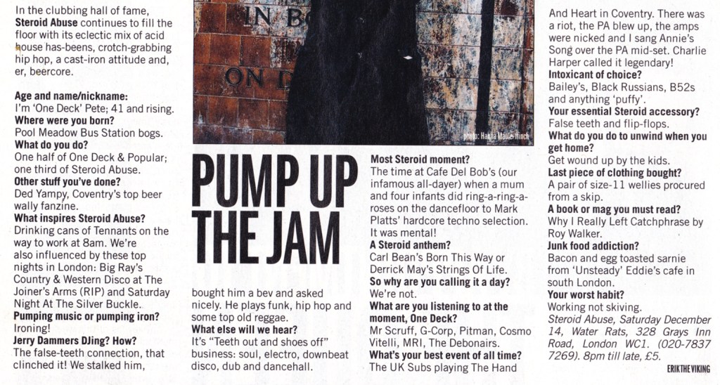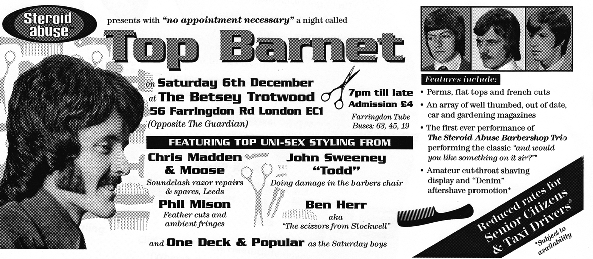 Here’s some of the flyers from Steroid Abuse the club. Big respect to all involved, the DJ’s, the venues and all who came down and had a laugh with us many moons ago! Big up to all the shoes off massive! Do look forward to our 76 year celebrations in years to come.