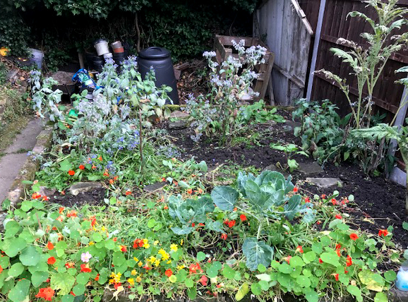 As for smelling and enrichment the comfrey liquid is high on the list for those two properties. The container was ponced off a butcher, the housebrick to weight it all down and the comfrey, nettle and borage leaves all from the garden itself. It’s A1 stuff but blimmin’ reeks, keep it off your clothes!