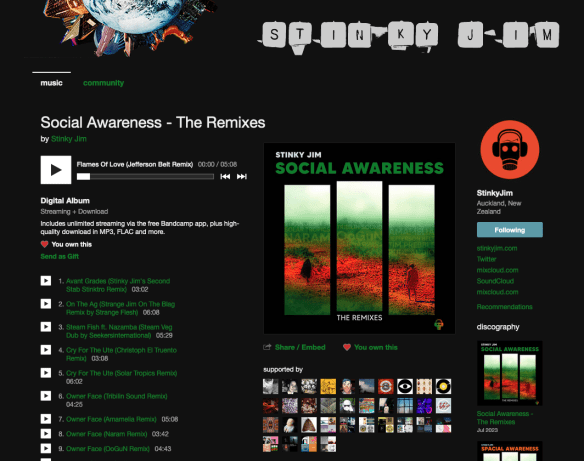 Last year we posted up an LP called Social Awareness from Stinky Jim out of Auckland, New Zealand here. Cheers goes out to Jim who this morning let us know about the new remix LP here. If you love reggae, chilled out tunes and the eclectic you’ll love this!