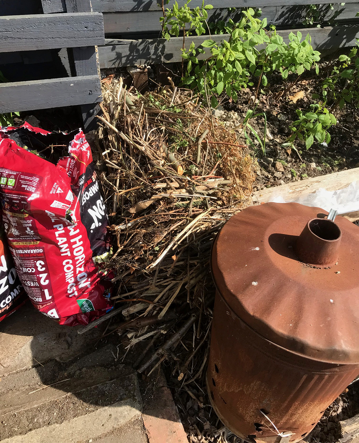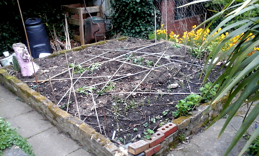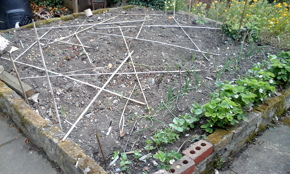 Bamboo canes are also in use at the veg patch at the bottom of the garden as a bit of a cat deterrent thrown over the now