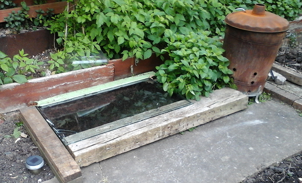 A couple of rows of spinach and basil seed even went in (yes we’re well optimistic about the weather) under a homemade cold frame type affair made out of an old window and some old wood. It was really a ploy to get rid of a “bargain” obtained at B&Q the other day; a massive sack (125L) of multi-purpose compost for £6.50. As soon as we opened the bag we knew why it was so cheap, it honked to high heaven and it’s not something you want to be putting in pots indoors for certain. As the old saying goes “there’s no such thing as a free lunch (or a compost bargain).”