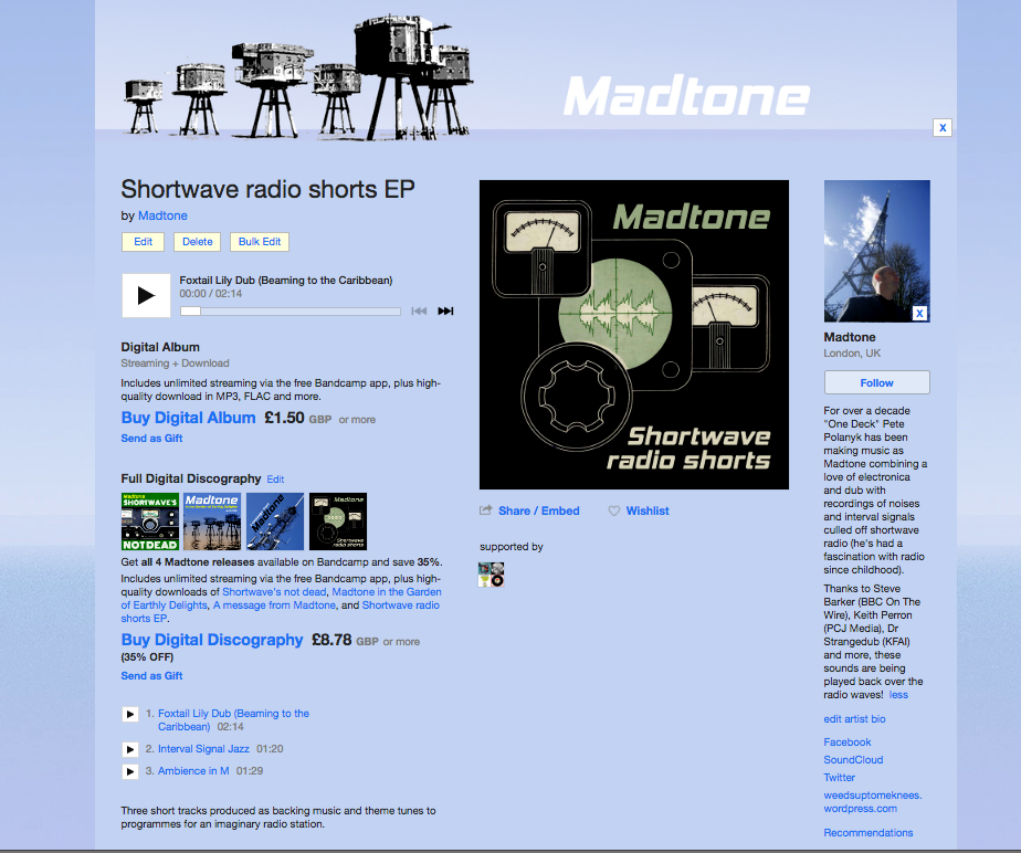 The next we’ve chosen (above) is a numbers stations related tune and you know we love one of them here. There’s quite a few on Bandcamp if you tap in “Numbers Stations” under the search. Some are of an industrial or harsh experimental nature which all have their place but it is nice to hear something in a more chilled out style. The track even has some morse in there as well. Double radio-related bonus. Cheers for the musical tip Justin.