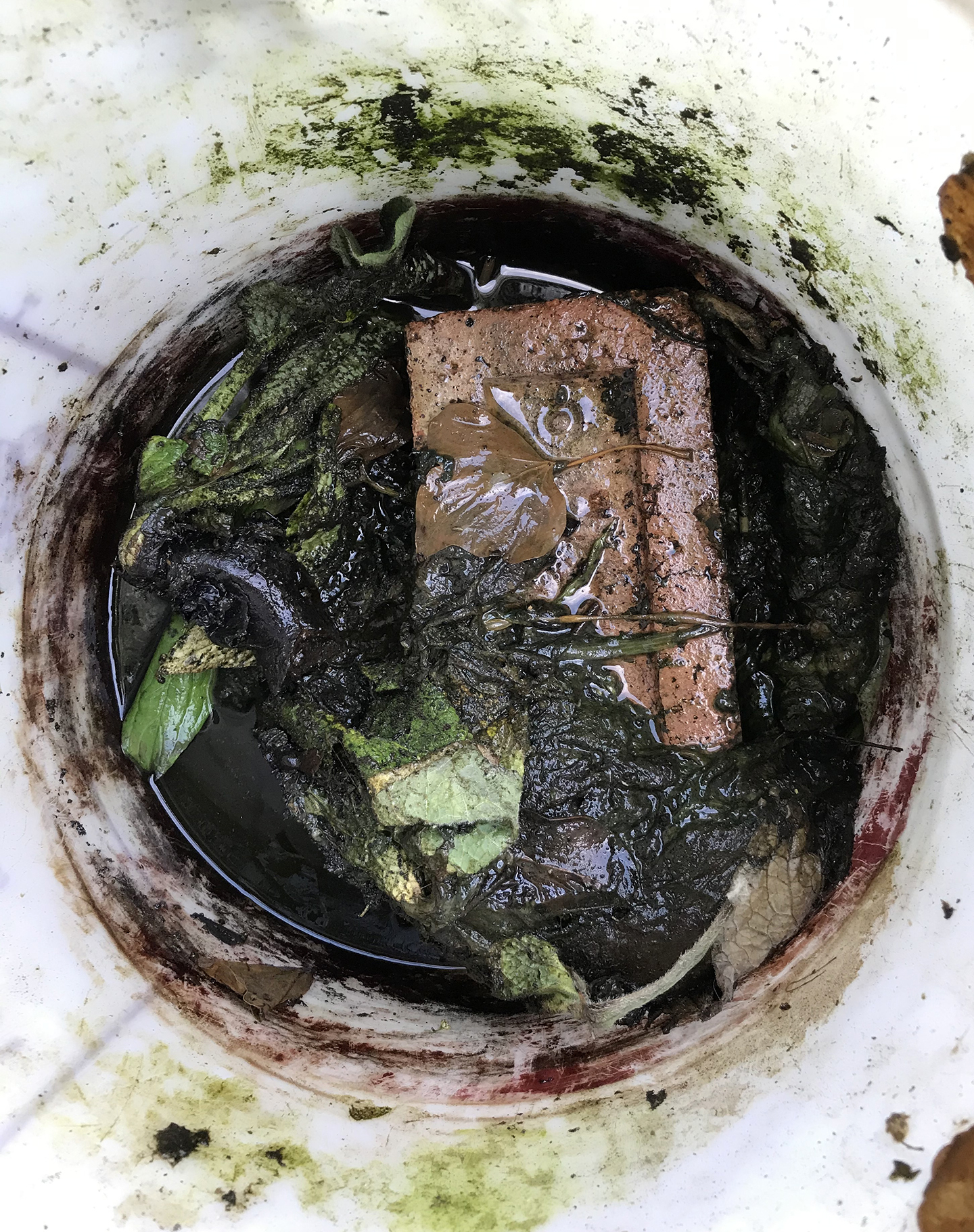 Comfrey liquid, don’t we all just love it? Looks awful don’t it? Well imagine the smell is about 1000 times worst as how it looks and you’re close. Drain out the liquid from the above abyss into a bottle then transfer a capful into a watering can and add some H20 and you’ll have some top end plant feed, we kid you not. As well as being bunged into a 1980’s Boot’s homebrew bucket we’re use a leaf or two to put below tomato plants (and other seedlings) before they go in the ground. A very versatile plant and the bees don’t half love it!