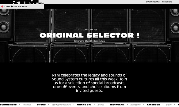 A big thanks to Jesse Yuen for letting us know about some dub happenings from 22nd – 28th February 2021 on RTM.FM Thamesmead here. It’s a week long celebration of soundsystem culture under the name of Original Selector!