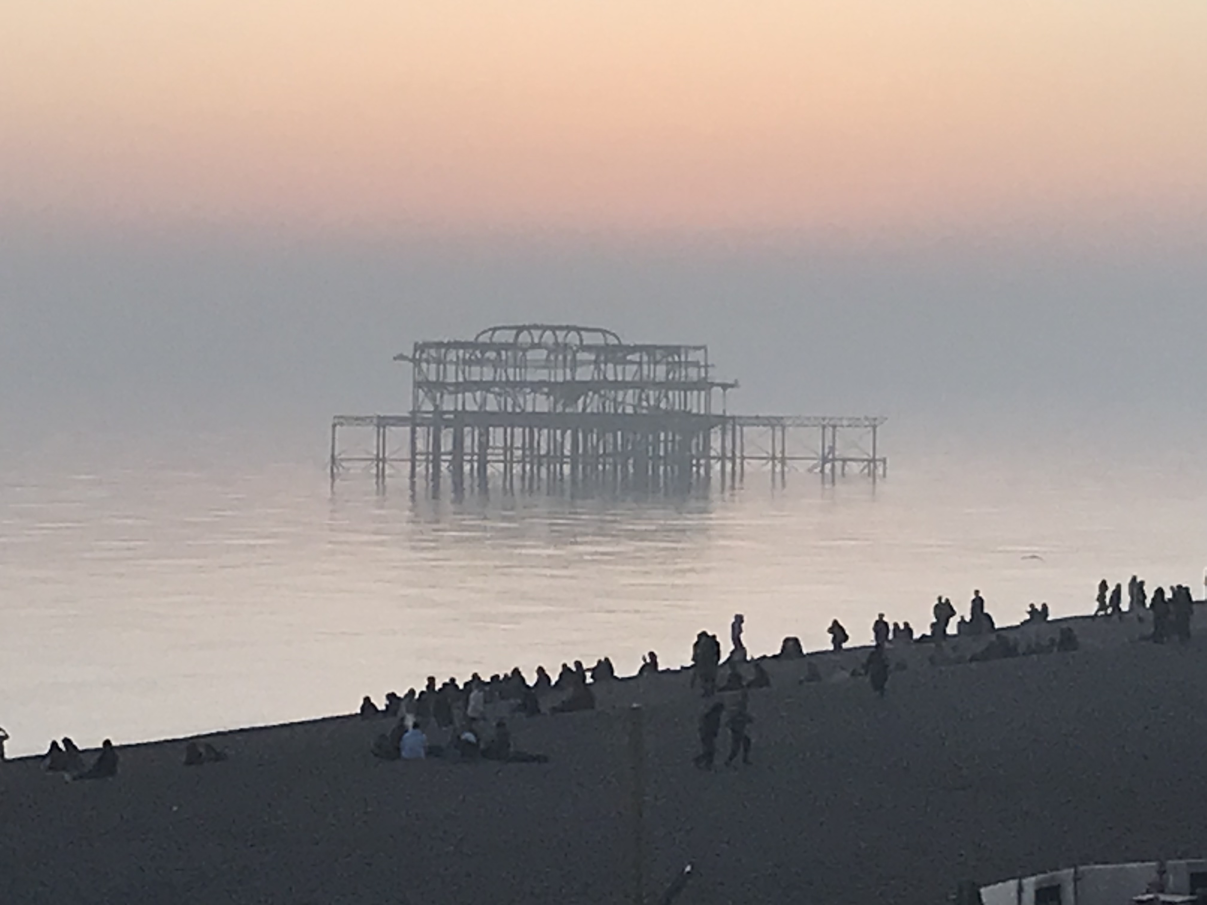We’ve just returned from a couple of days in Brighton where when we arrived, there was a mad sea mist which engulfed all of the seafront. It lifted late afternoon to reveal a wave-free sea that looked like glass as there was zero wind which made for a very out of this world sunset (above).