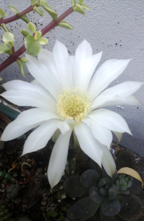 Over the years we’ve posted up a few pictures of cacti, in this case more of a succulent in our back garden (below) that flowered for one day only back in 2018 here.