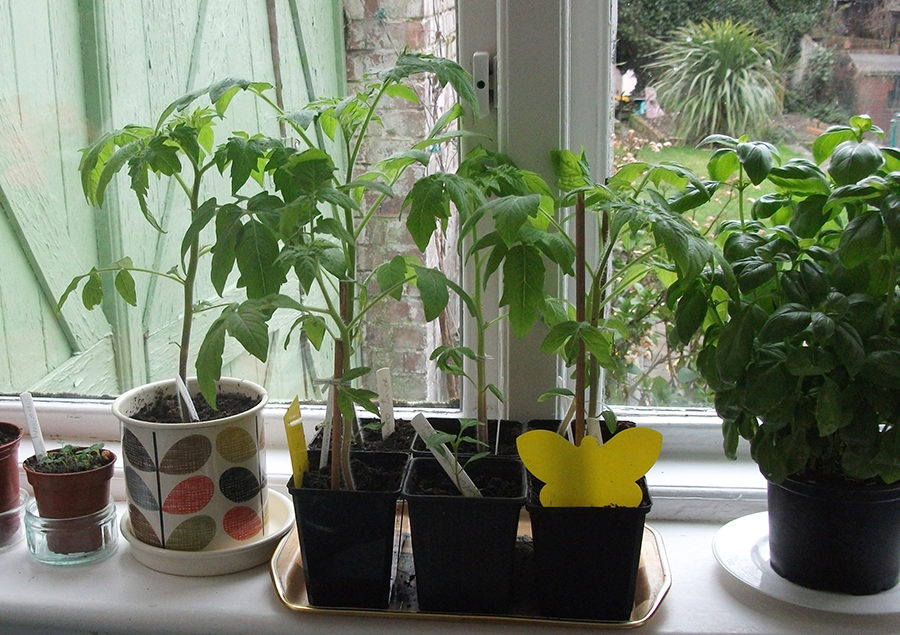 Also in the back room near the window, is a covered propagator with tomatoes (Moneymaker) and sweet peppers off to an early start, which will be no doubt be leggy as hell before they’re ready to go out.