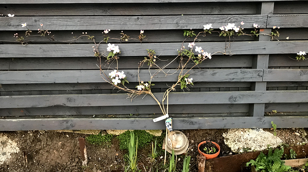 We made a nice purchase from the centre aisle of Lidl this week, another Clematis Montana (Cheers to Nancy B for the original recommendation a couple of years ago). It went in yesterday with a good bit of water. Let’s hope it can stand the weather over Monday and Tuesday next week where it may be down to minus 1! It would be very nice to think that the variety was named after the great Vincent Montana too, you never know.