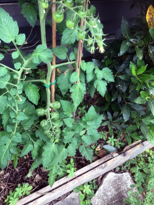 We can’t believe that it’s July next week, how time flies (pic above: self-seeded poppy down the garden yesterday). It was just the other week we were thinking if there was going to be a frost or not so we could put those leggy tomato plants out. Gardening is all about patience and just getting on with it, the waiting game so to speak but we’re not very good at that. And talking of tomatoes we’ve got our first trusses of fruit developing on some of the plants we grew from seed (below). That weekly feed of comfrey liquid must be helping as well as sideshooting and a daily water.